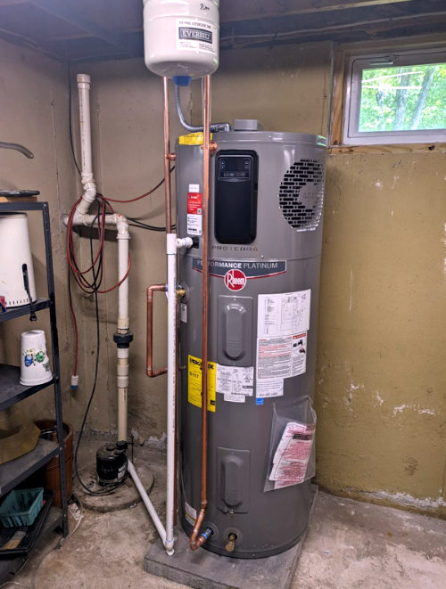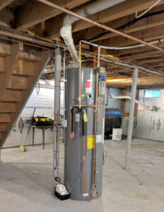 New construction rough in waste, vent, and water supply piping as well as heat pump water heater installation
